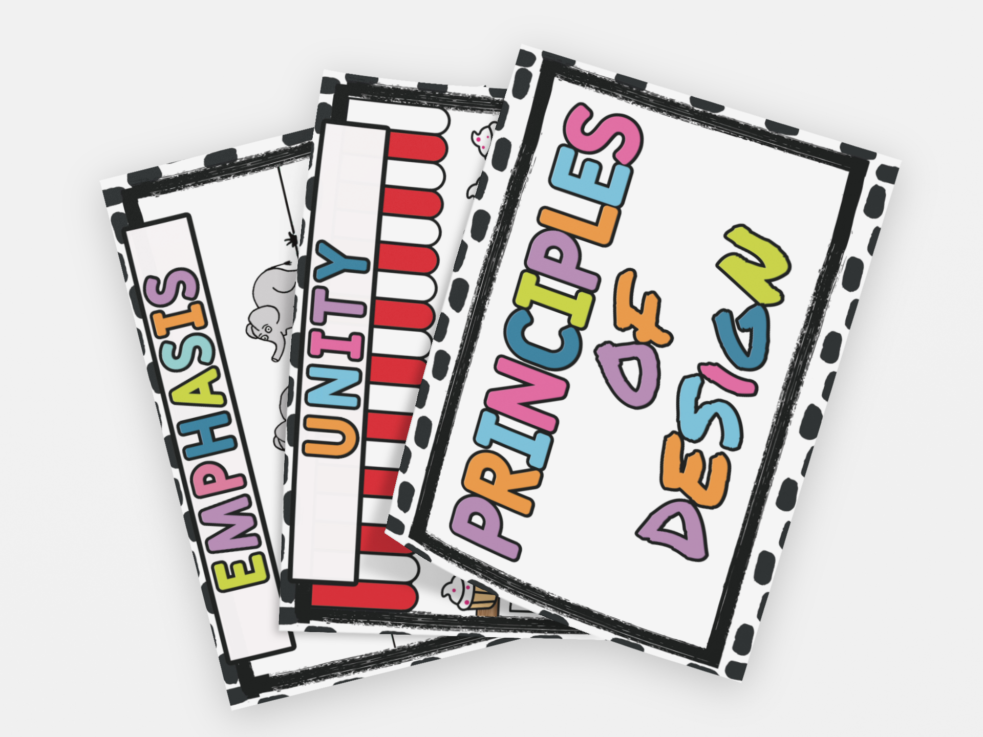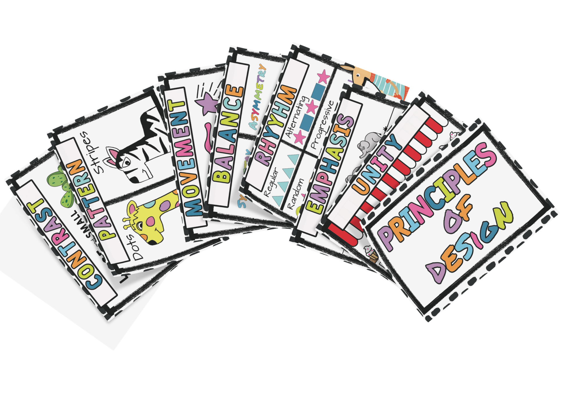 Expand your students art vocabulary by integrating the Principles of design into your art curriculum. These fun and inviting posters will be sure to grab the attention of your students.
