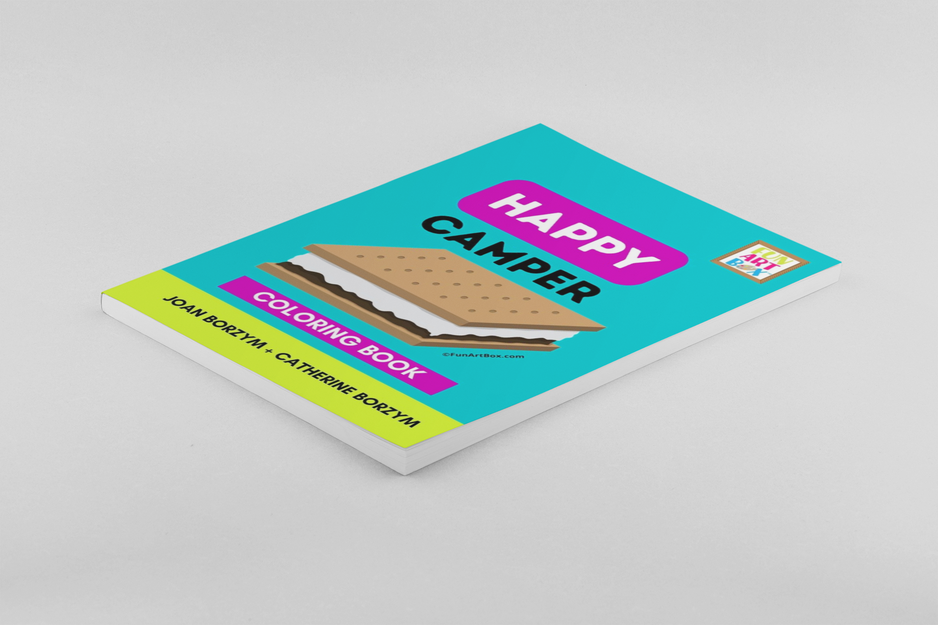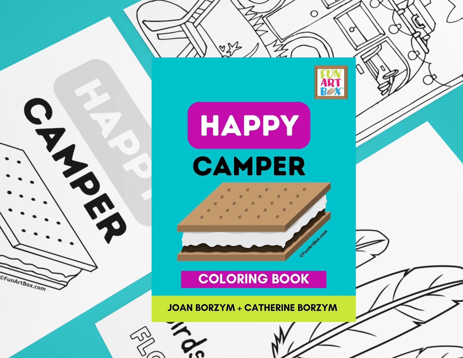 2. "Happy Camper": Embark on a camping-themed coloring experience, featuring whimsical designs that capture the essence of outdoor fun. The book includes a complimentary set of colored pencils and a pencil sharpener for a seamless coloring journey.