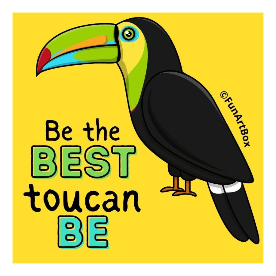 Looking for a fun and colorful way to stay motivated and inspired? Let this tropical bird be the ultimate reminder to be the best that toucan be. With its vibrant colors, bold beak, and playful personality, this toucan is sure to bring a smile to your face and inspire you to reach for the sky. Stick it on your belongings to show off your love of all things tropical and remind yourself to always strive for greatness.
