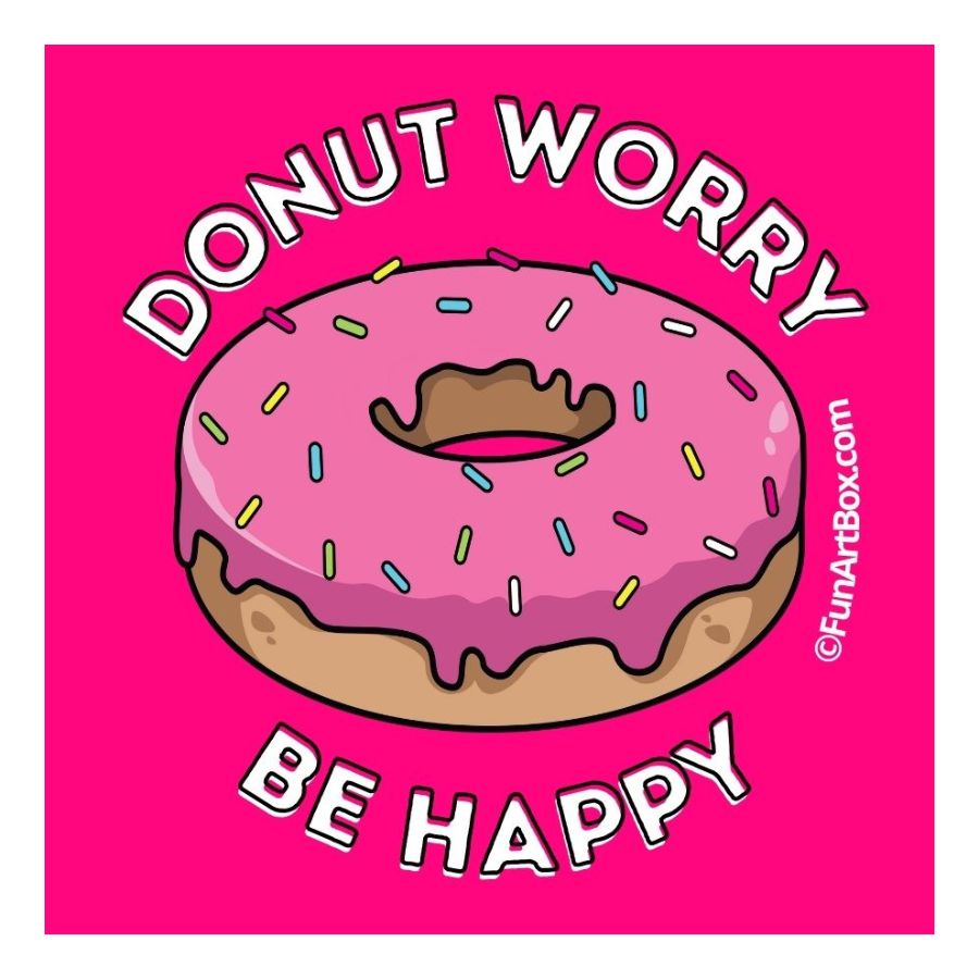 Are you feeling a little down? Well, donut worry, be happy with our scrumptious donut sticker! Stick it on your belongings to show off your positive attitude and remind yourself to always look on the bright side of life.