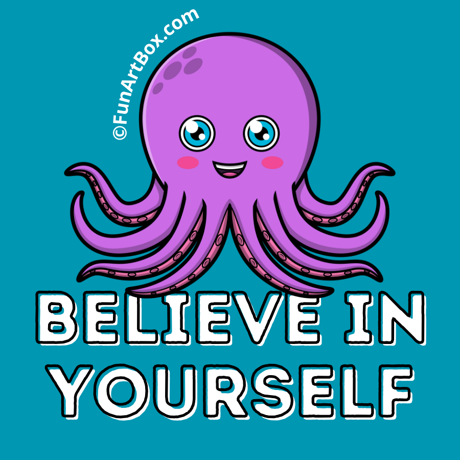 Let this cute octopus inspire with its message "Believe in Yourself". This wall art poster is designed to capture the imagination of young minds. Perfect for bedrooms, playrooms, or classrooms. This delightful poster is a daily reminder will inspire your little ones to embrace self-belief and tackle challenges with a smile. 🌊🐙✨