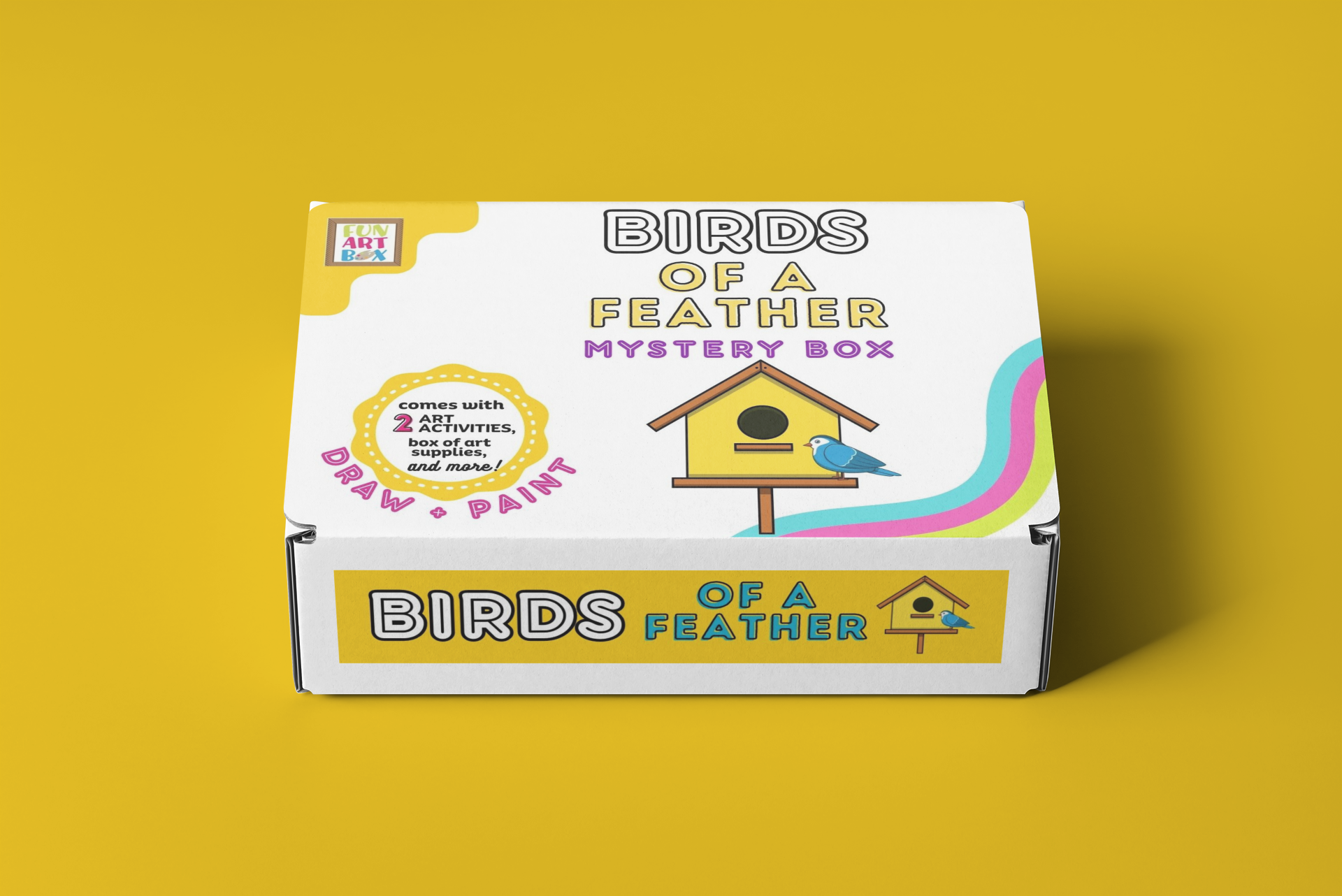 But the real treat is the Mystery Box, which contains all the art supplies you need to complete a fun and unique art project with step-by-step directions, mailed to you in a cute branded box.